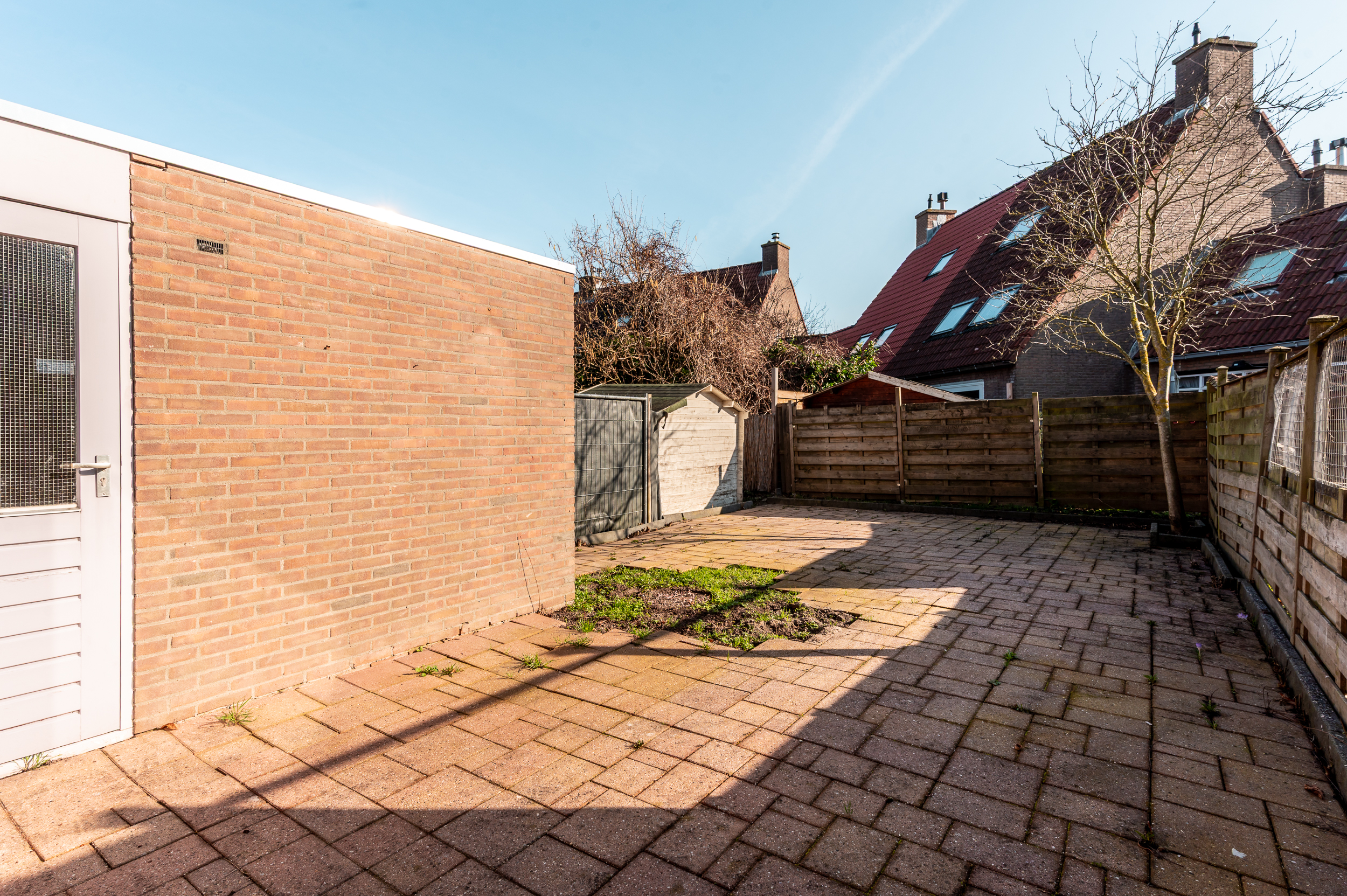 Tuin: De achtertuin is circa 11 meter diep en 6 meter breed, gelegen op het oosten en voorzien van bestrating en een erfafscheiding met achterom. Hier heeft u alle ruimte om een fijne plek te creëren om te ontspannen of gezellig buiten te zitten.