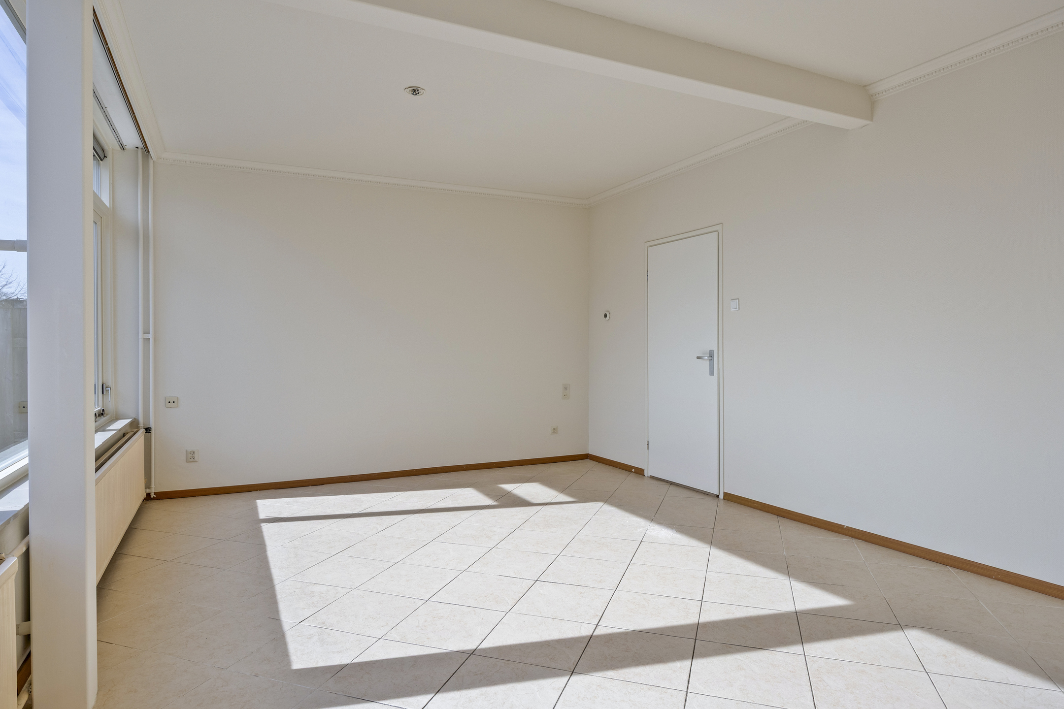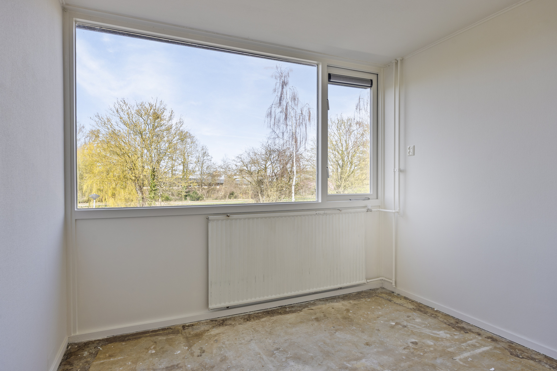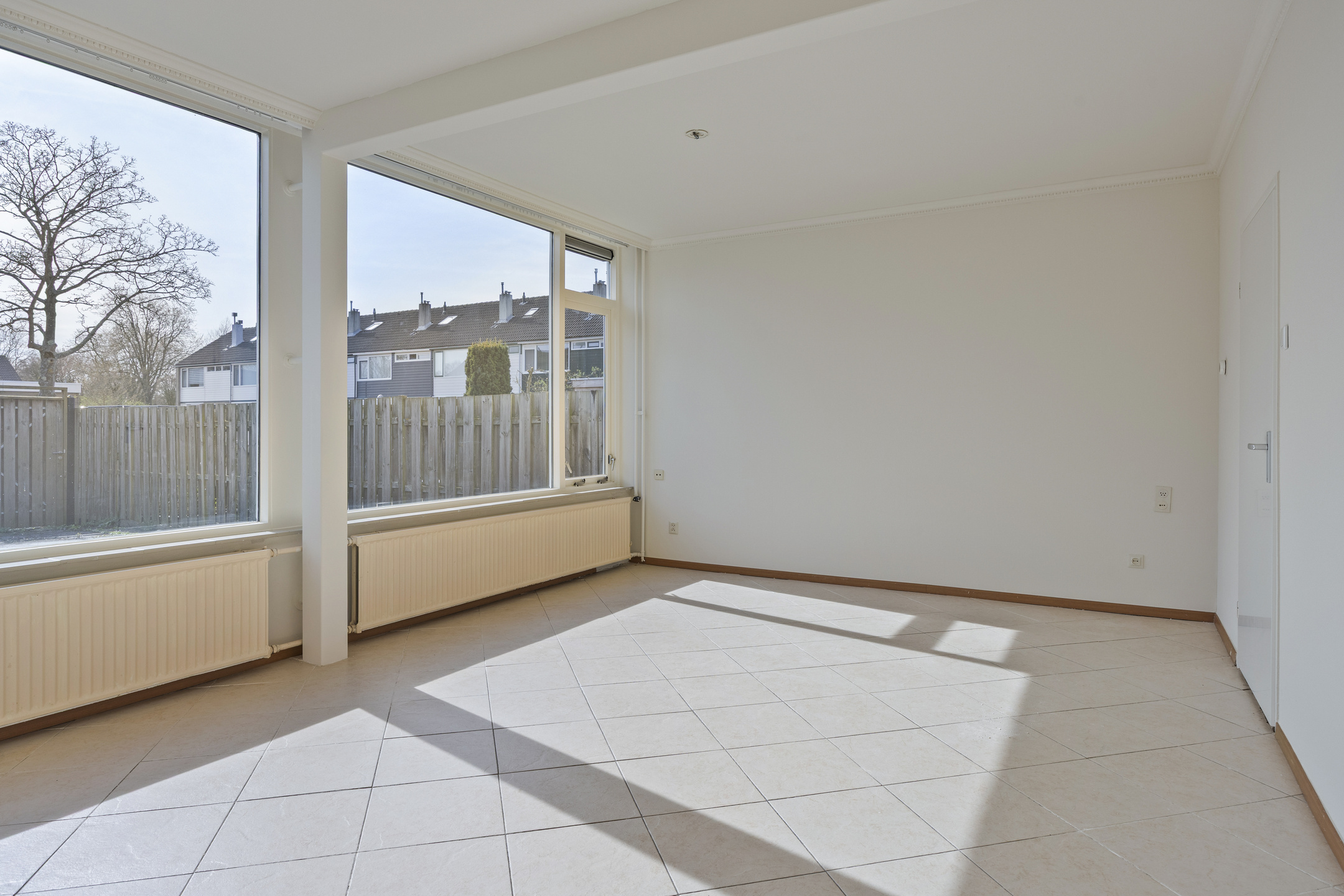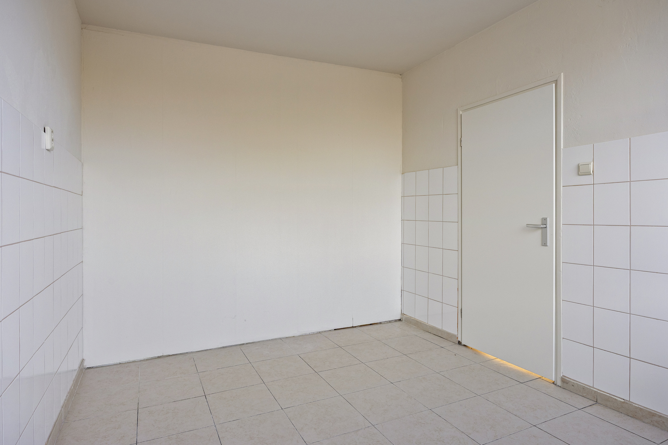 Begane grond: Entree, hal met de meterkast (automaten en v.v. glasvezel); toilet met fonteintje, trapopgang naar de eerste verdieping en toegang tot de royale woonkamer en separate keuken; de tuingerichte woonkamer meet 25m² en biedt een grote hoeveelheid lichtinval door de vele raampartijen; de separate (woon)keuken van 12,4m² bevindt zich aan de voorzijde van de woning en is voorzien van een eenvoudig, standaard keukenblok zonder enige apparatuur.