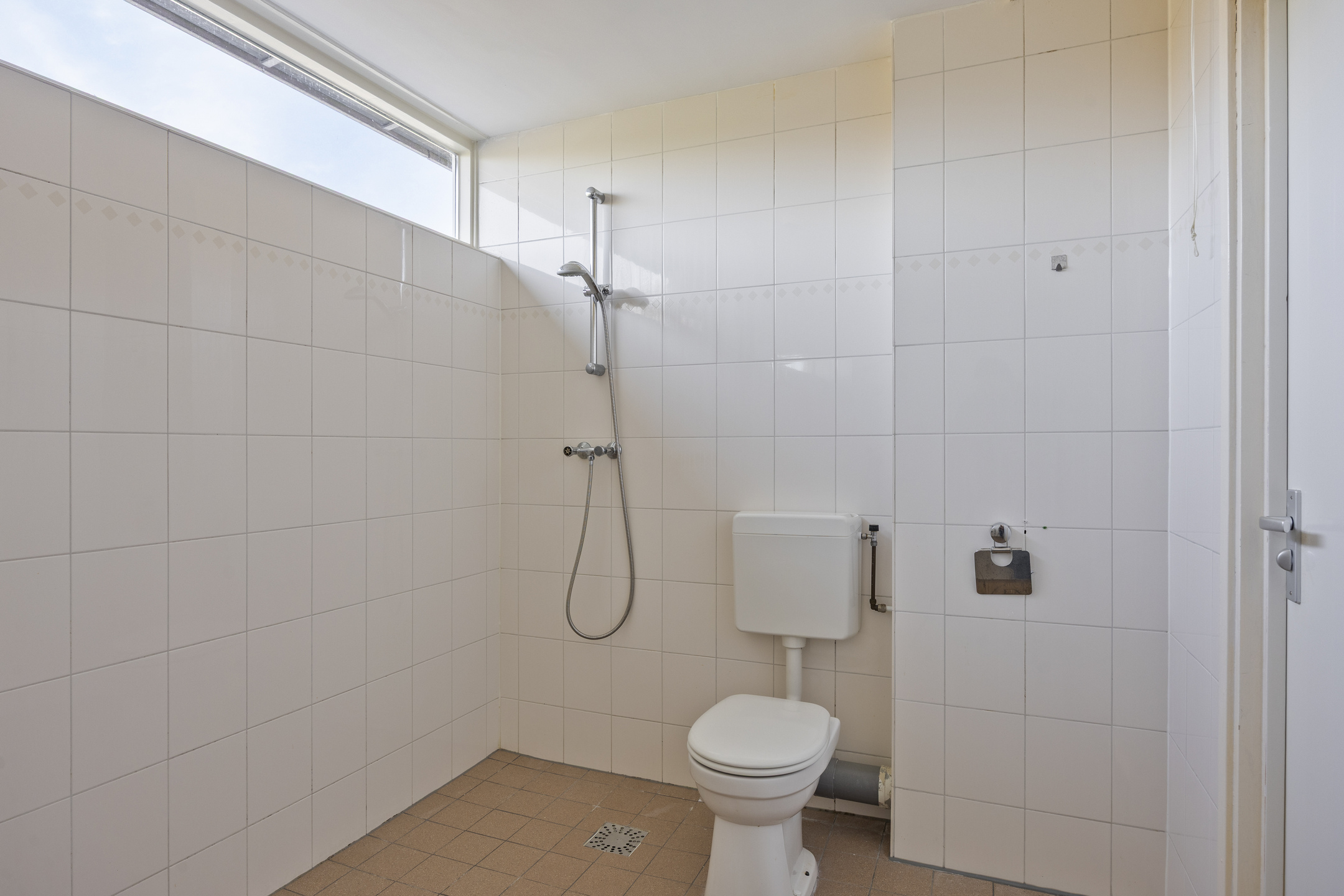 Eerste verdieping: Overloop; drie ruime slaapkamers van respectievelijk 9,7-, 12,4- en 15,4m²; volledig betegelde badkamer welke is voorzien van een toilet, wastafel, douchehoek, de wasmachine aansluiting en een raam voor ventilatie en daglichttoetreding.