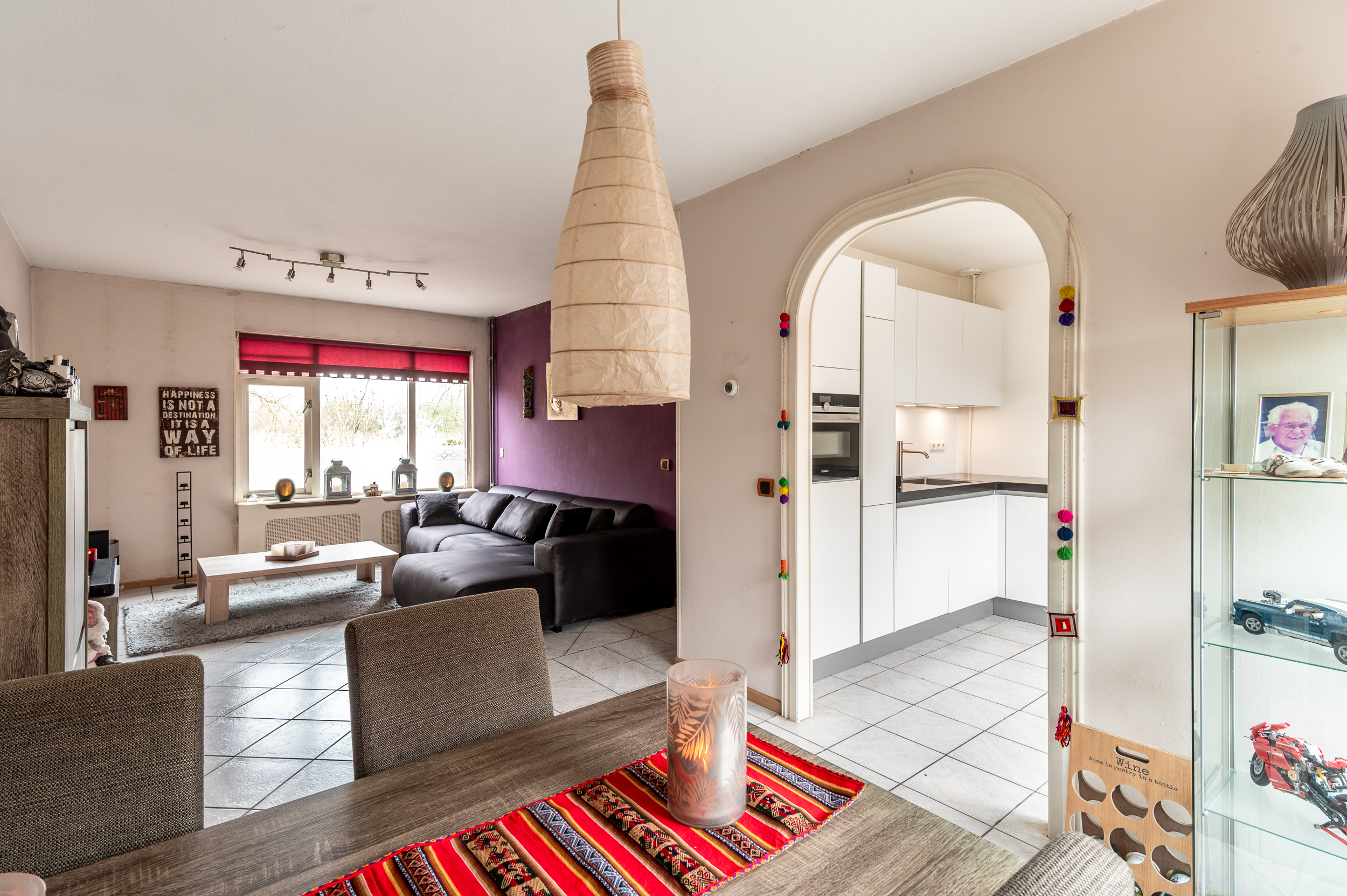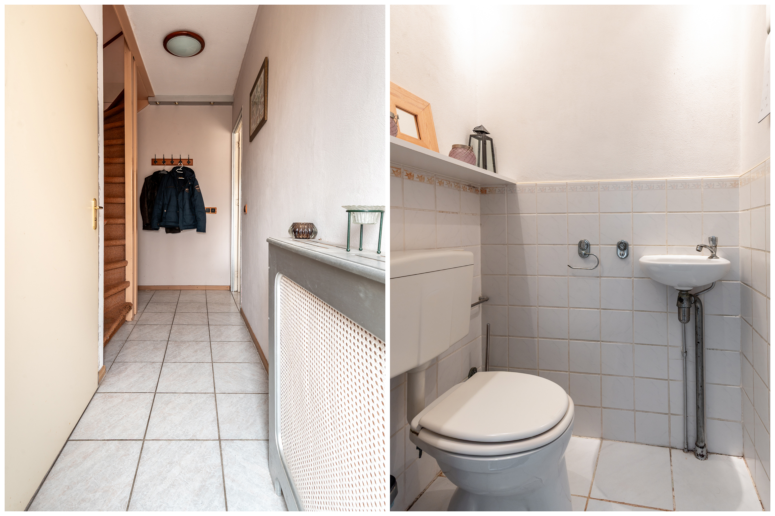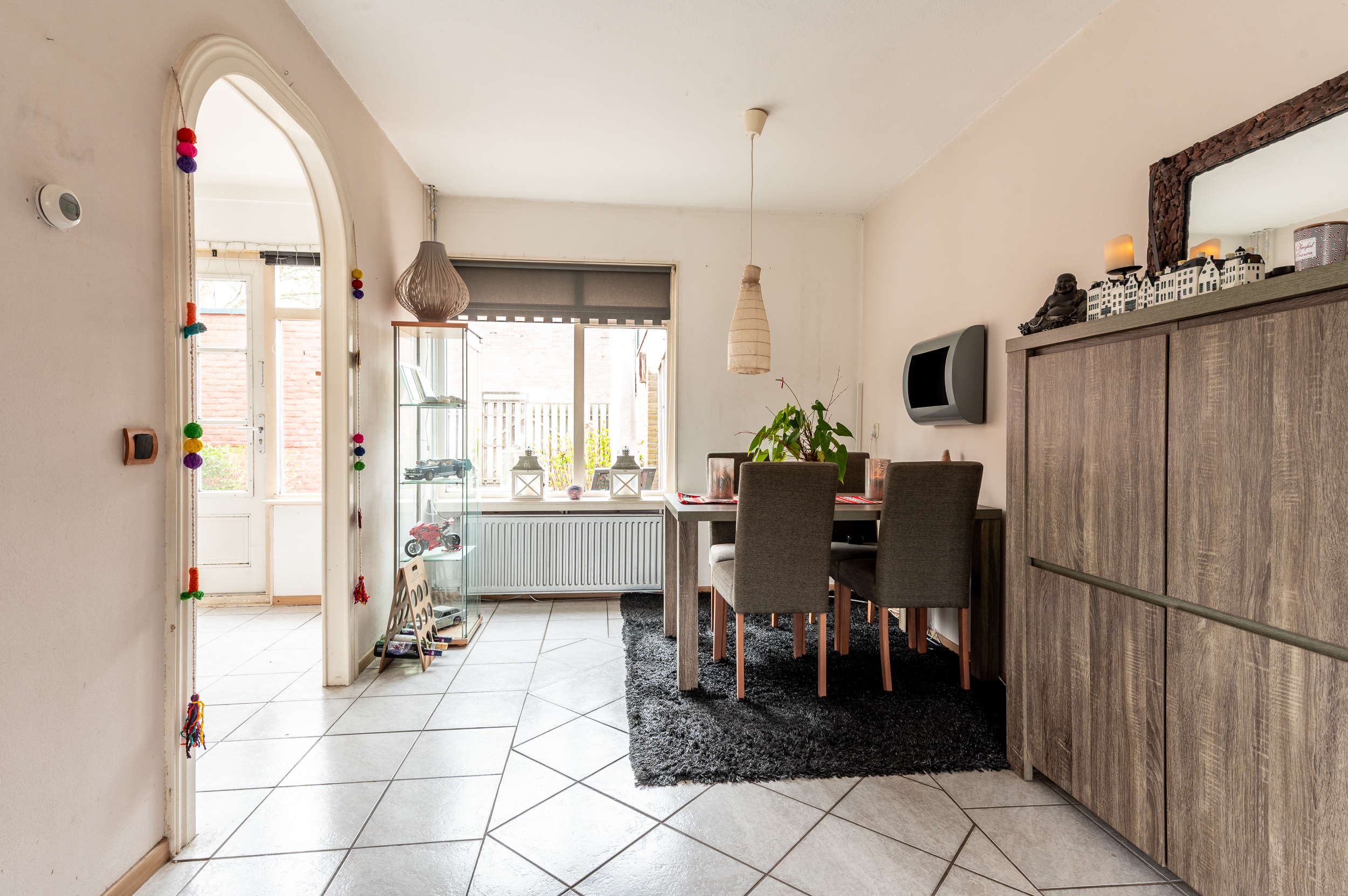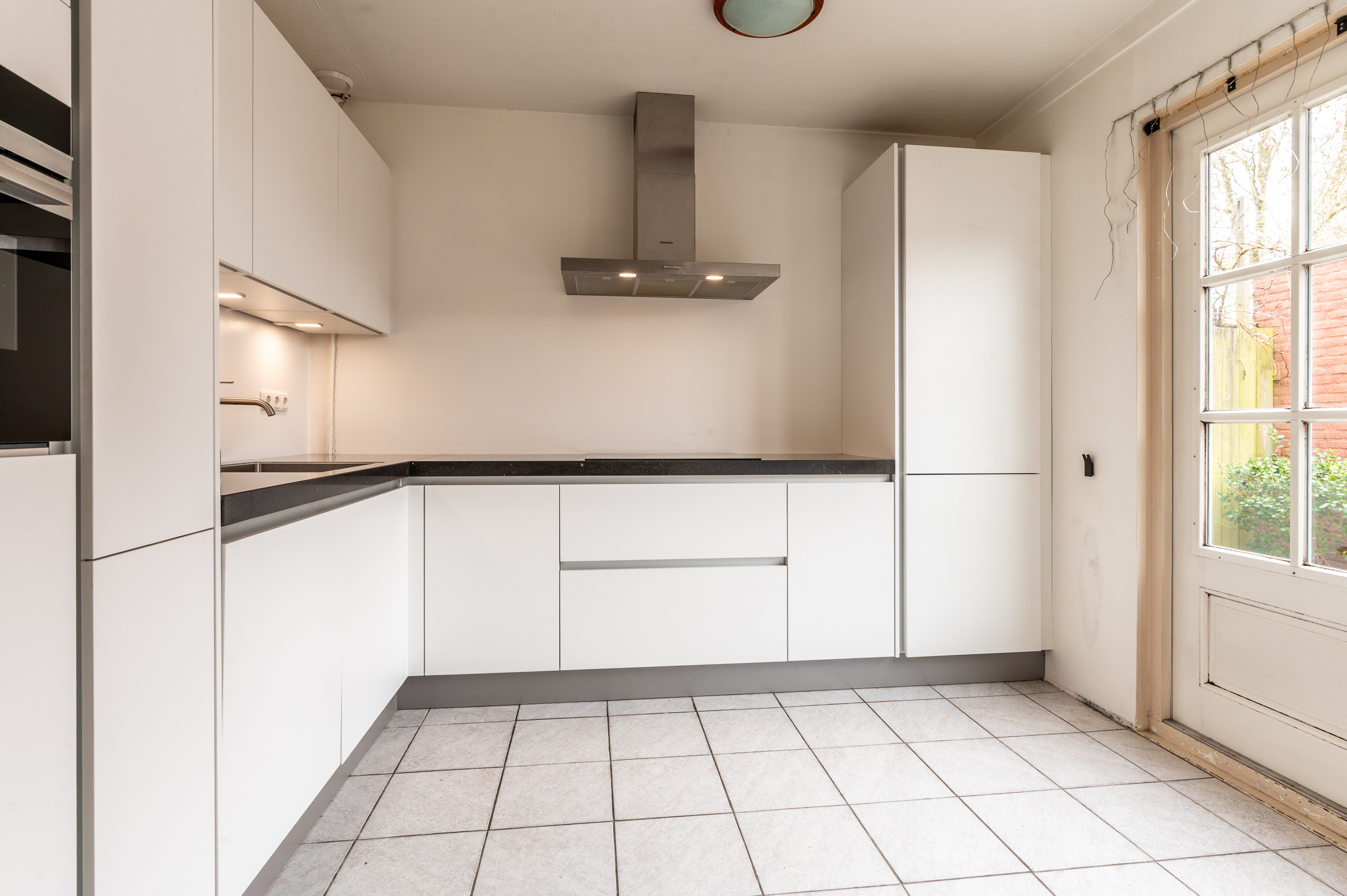 Begane grond: Entree; hal met meterkast en toilet met fonteintje; ruime doorzon woonkamer van 25m² met een in 2021 vernieuwde semi open keuken in L-opstelling, welke is voorzien van de navolgende inbouwapparatuur: een RVS afzuigschouw, inductie kookplaat, combi oven/magnetron, volledig geïntegreerde vaatwasser en een koel/vriescombinatie; via de deur in de keuken bereikt u de op het zuidwesten gelegen tuin. Vrijwel de gehele begane grond verdieping is voorzien van een in lichte kleurstelling uitgevoerde plavuizen vloer.