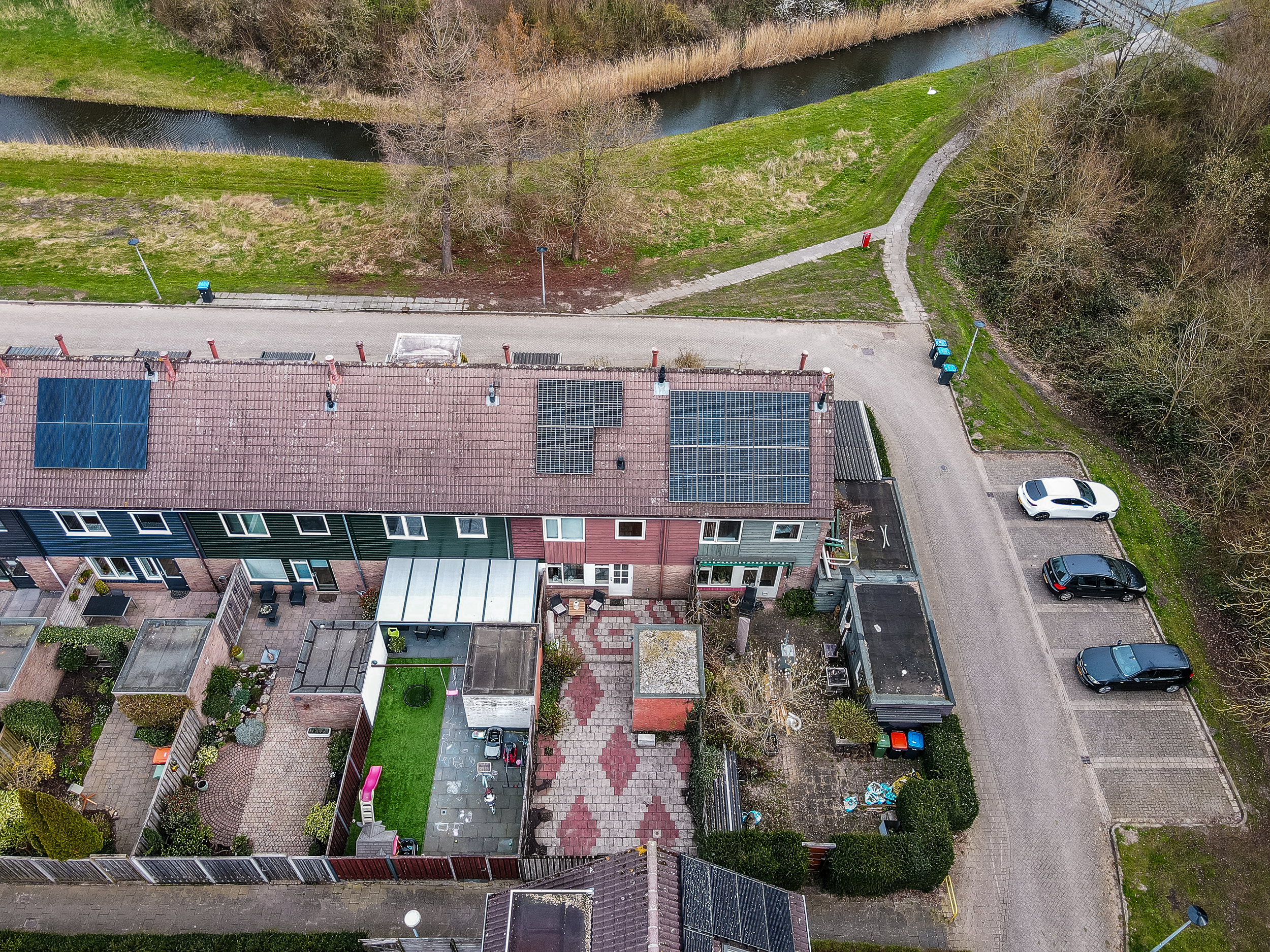 • 5 zonnepanelen (geplaatst 2022); opbrengst 2025: 2.099 kWh, huur € 34,-- per maand, afkoop mogelijk voor € 3.395,--
