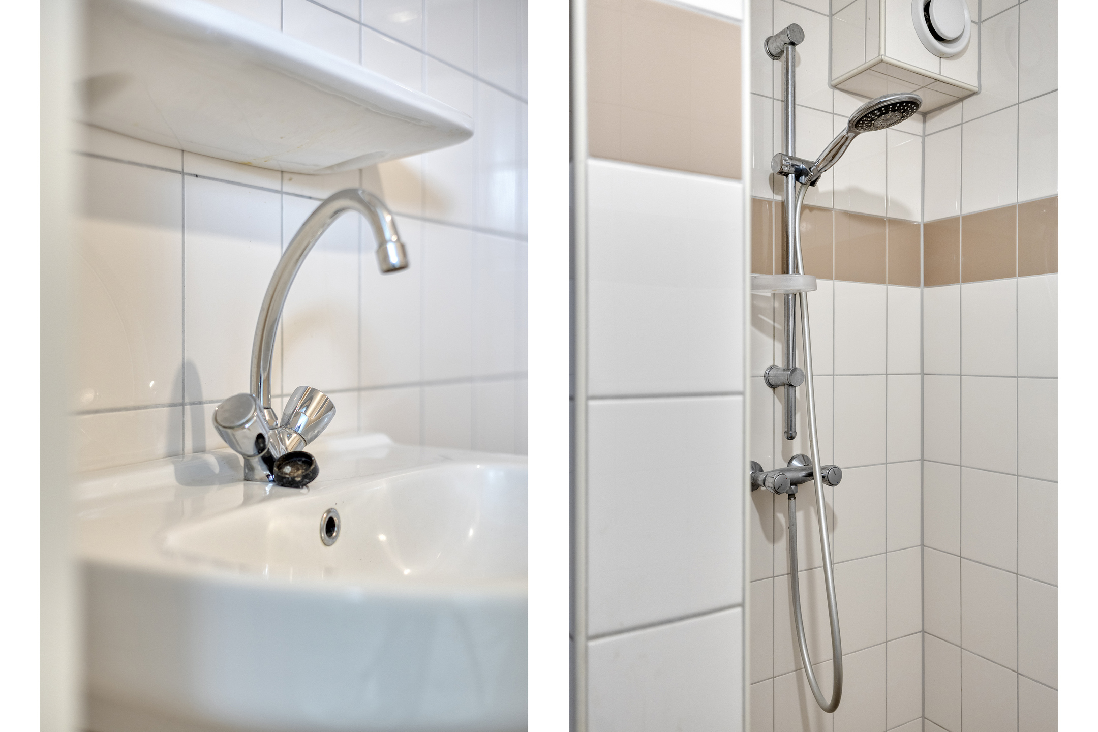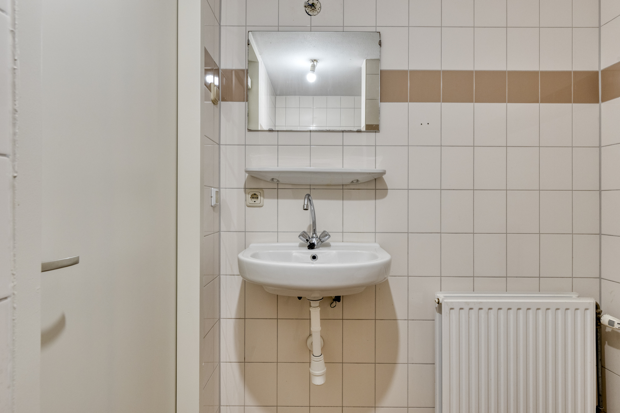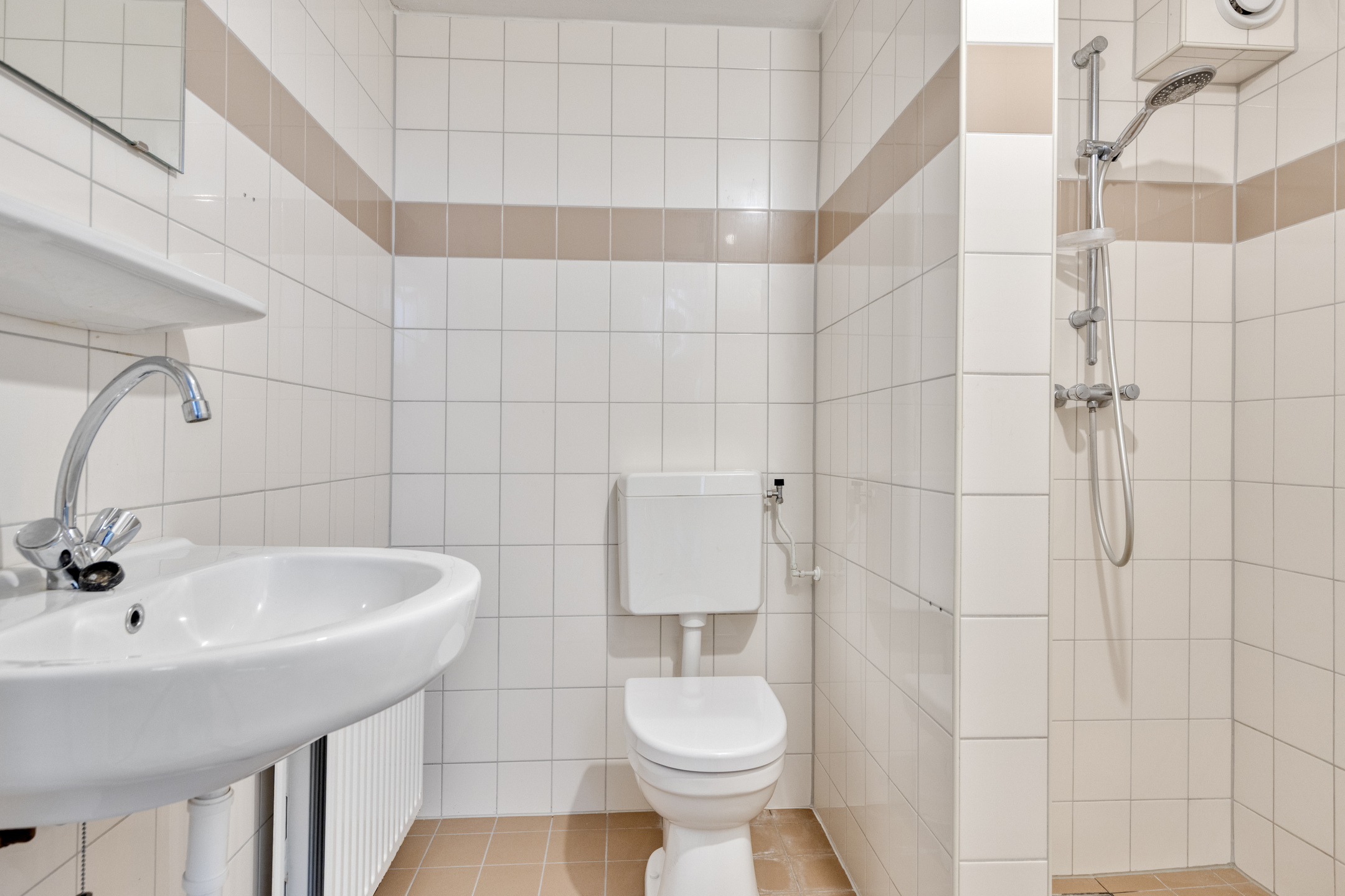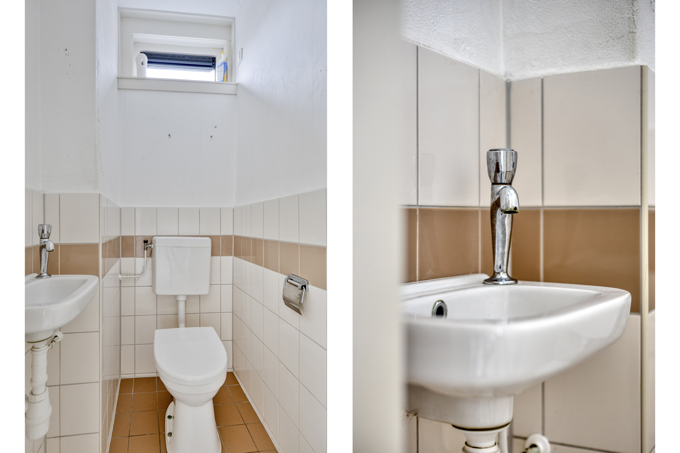 Eerste verdieping: Overloop; drie ruime slaapkamers van respectievelijk 5,6- / 8,5- en 16,5m²; moderne, volledig betegelde badkamer welke is voorzien van een tweede toilet, wastafel, douchehoek en designradiator.