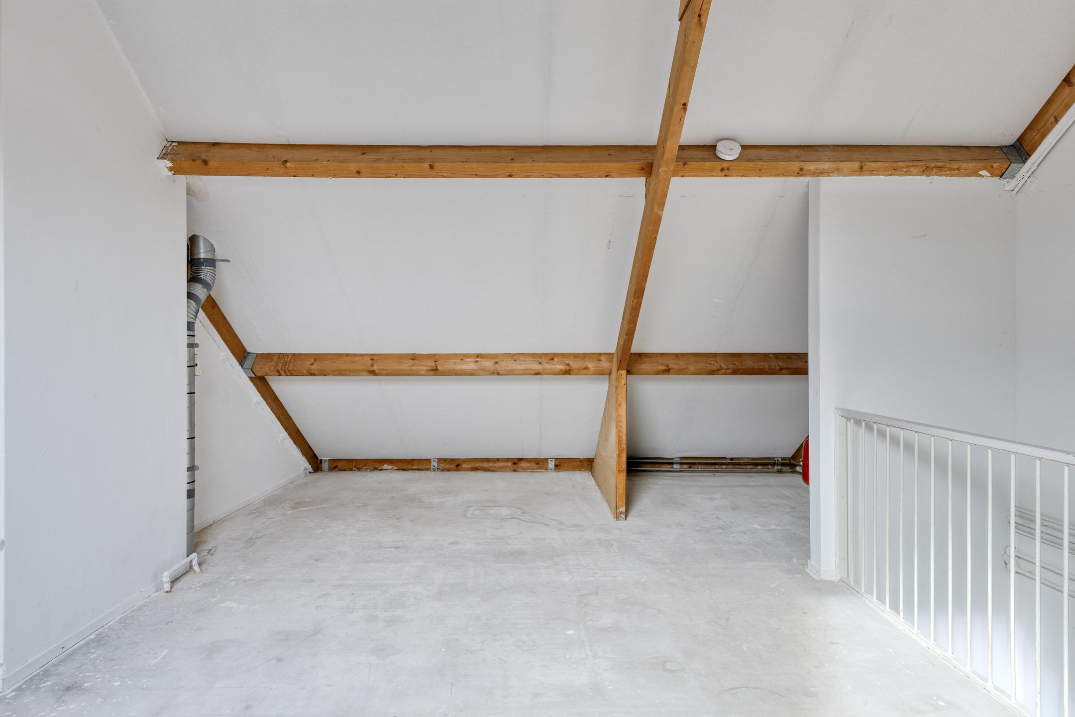 Tweede verdieping: Via een vaste trap bereik je de tweede verdieping waar je een ruime open zolder treft met de opstelplaats voor de wasmachine, alsmede de opstelplaats voor de CV installatie; het realiseren van een VIERDE ruime slaapkamer is eenvoudig. Een Velux raam zorgt voor meer dan voldoende lichtinval.
